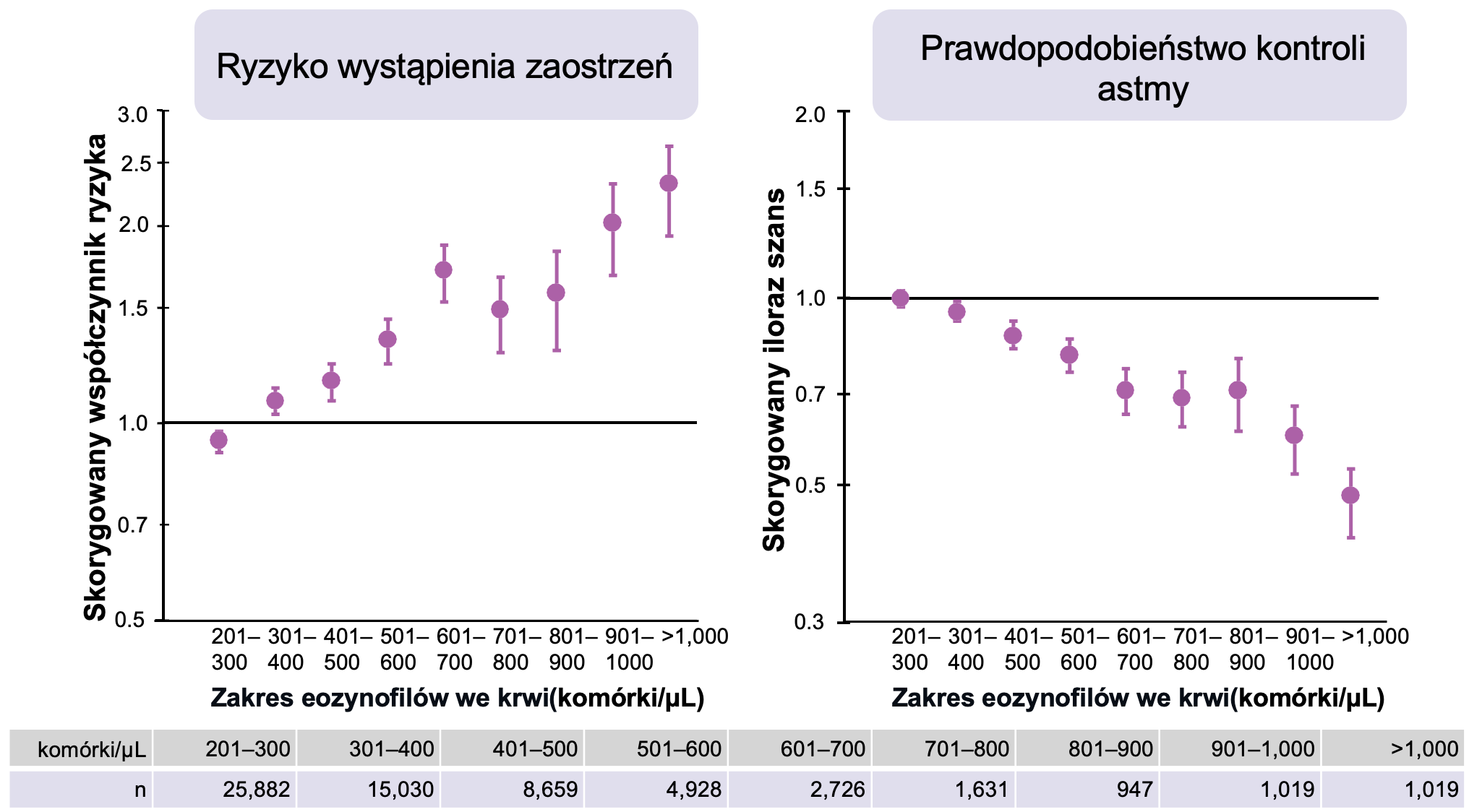 1Wzrost o 1 jednostkę w kwestionariuszu ACQ-5 w stosunku do średniej 1,8 (ang. per 1 ACQ-5 unit increase relative to median 1,8%).