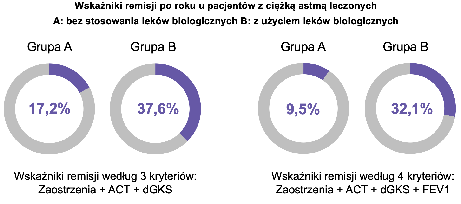 Pacjenci leczeni bez użycia terapii biologicznej osiągali niższe wskaźniki remisji, pomimo mniej zaawansowanej choroby na początku leczenia1